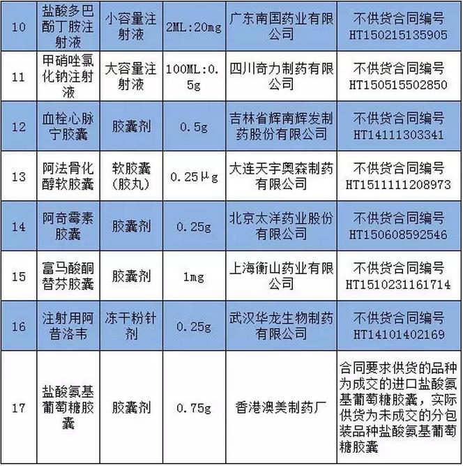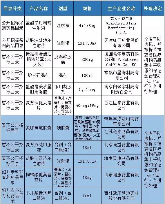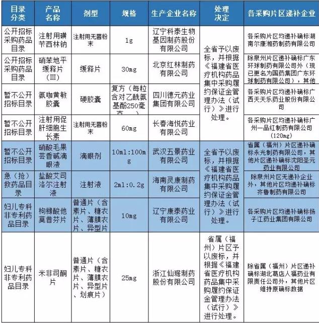 通知稱,根據(jù)《福建省醫(yī)療機(jī)構(gòu)新一輪藥品集中采購實(shí)施方案(2015年修訂版)》、《福建省醫(yī)療機(jī)構(gòu)藥品集中采購履約保證金管理辦法(試行)》(閩衛(wèi)醫(yī)政〔2015〕146號(hào))等有關(guān)規(guī)定和省藥采辦專題會(huì)議決定,現(xiàn)對(duì)重慶賽維藥業(yè)有限公司等24家不能正常供貨生產(chǎn)企業(yè)的32個(gè)產(chǎn)品分別予以撤銷掛網(wǎng)等處理(具體見附件)。被處理企業(yè)是否列入不良記錄,待進(jìn)一步核查后另行公布。